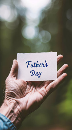Father's Day Card Held in Hand Outdoors. Celebration of Fatherhood and Appreciation.
