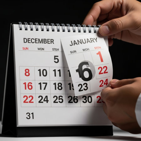 Close up of hand holding and marking the date of December 6 in a calendar