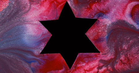 Creative star. Paint shimmer. Defocused red blue multicolor black shape frame glitter ink texture mix on abstract art marble background.