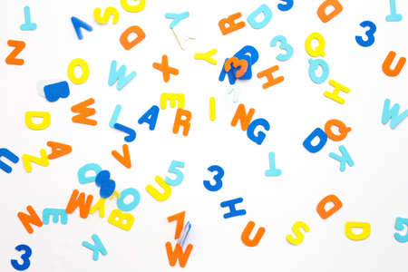 Colorful letters and the word learning on white background, learning or study concept various colors