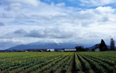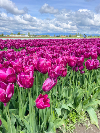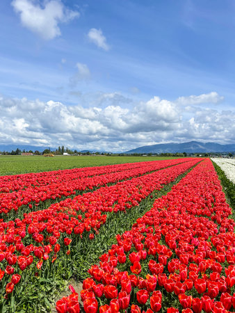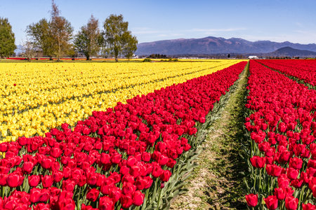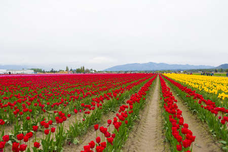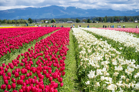Tulip fields during Skagit Valley Tulip Festival in Washington state, USA