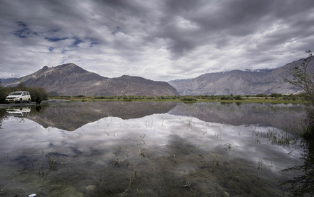 reflection scenery during traveling to leh Ladakh.