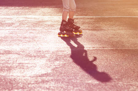 part of a teenager legs on roller skates in the summer