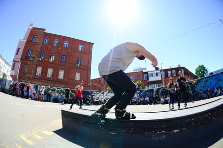 KHARKIV, UKRAINE - 27 MAY, 2018: Roller skating during the annual festival of street cultures.