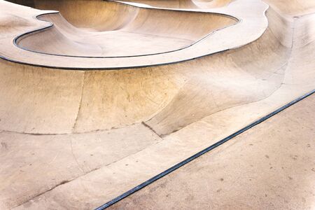 Background of an empty bowl with rails in a concrete skate park.