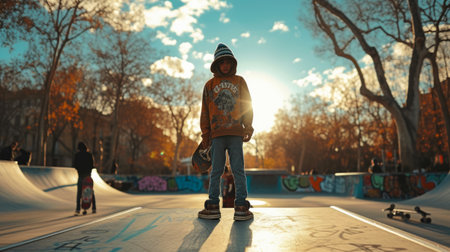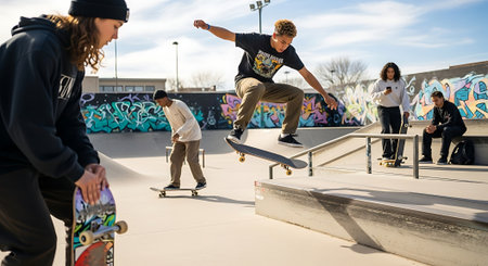 Embracing the urban skatepark lifestyle: a trendy and cool leisure activity for youth in the city, featuring skateboarding, graffiti, and street culture.