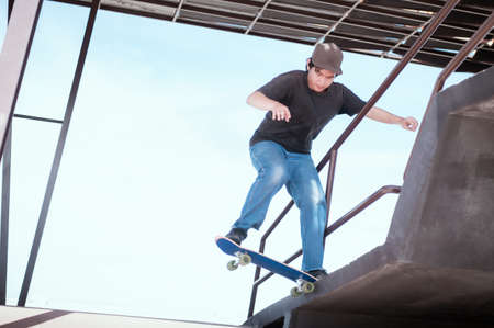 Skateboard jump. Young skateboarder ready to make a trick on his board.