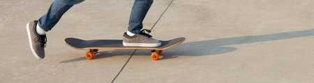 Skateboarder legs skateboarding at outdoors