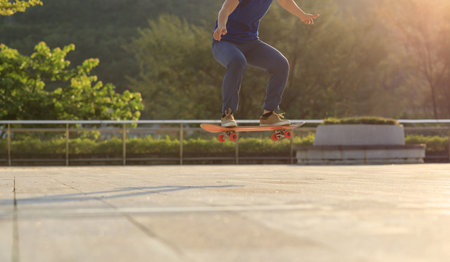 Skateboarder skateboarding outdoors in the morning
