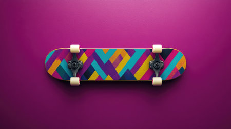 A vibrant geometric pattern on a skateboard deck, showcasing individuality and artistic expression