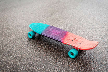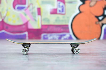 Youth plastic skateboard in a skatepark. Youth summer concept