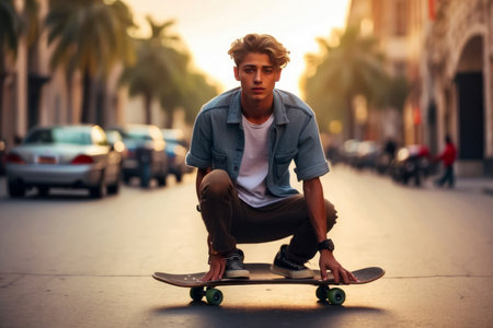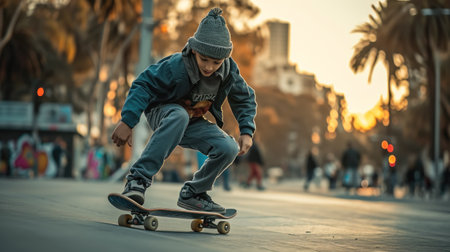 Skateboard Soar Embracing Joyful Momentum in Urban Style