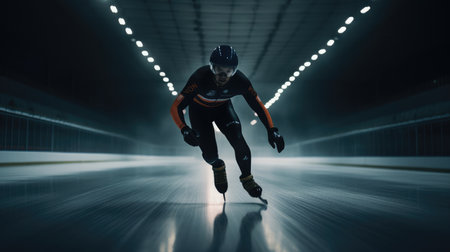 Speed skating team demonstrates agility and focus while racing on the ice track