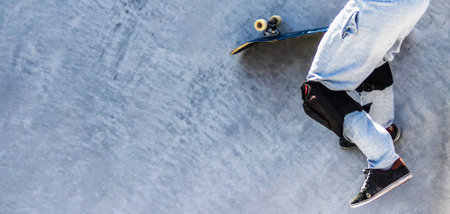 Top view of legs with inline skates. Boy and girl on roller skates. Place for text.