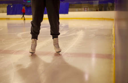 feet on skates on an ice rink. winter sport and recreation