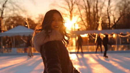 Winter Wonderland Youthful Elegance and Joyful Freedom on Ice Rink Amidst Sparkling Lights