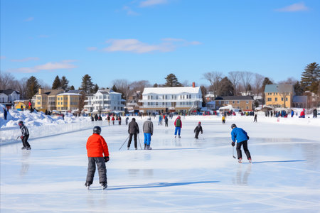 Outdoor Ice Rinks: Showcase the joy of ice skating and hockey on frozen ponds or man-made rinks. - Generative AI