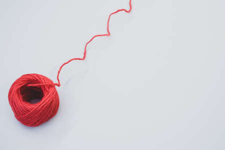 White thread isolated on white background. Rope, wool, knitting homemade handmade object