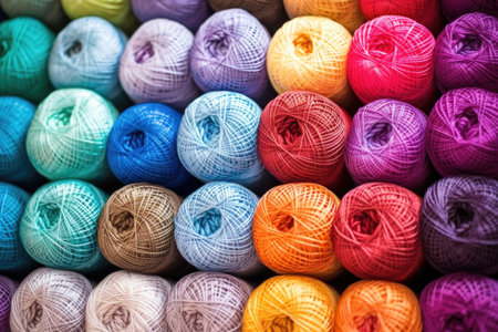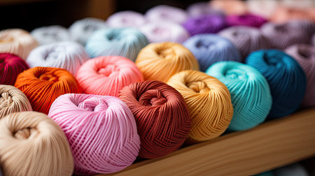 A Colorful cotton yarn balls neatly arranged in vibrant display
