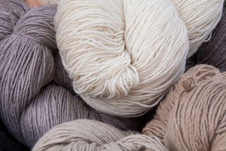 Vintage tone pictures. Skeins of wool in beige tones. Banner. Point depth of field.