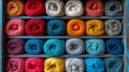 Discover a vibrant collection of colorful yarn, perfect for various crafting projects. Ideal for knitting, crocheting, or any creative endeavor.