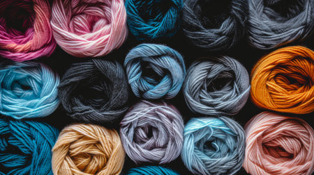 Many colorful balls of yarn create a vibrant and textured background, perfect for knitting and crochet projects. Ai generated image