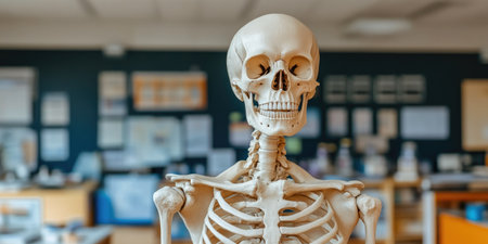 Human Anatomy Skeleton Displayed in Educational Classroom