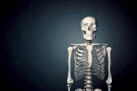 Human skeleton anatomy on gray background. Medical and health care concept.