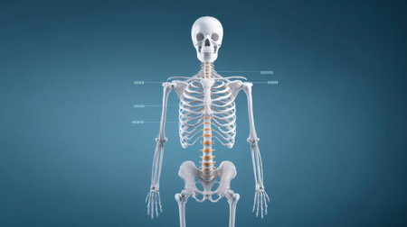 Human skeleton is shown with the lower half of it's body visible. Generative AI.