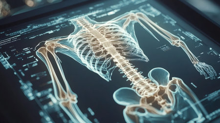 Digital Human Skeleton Model Displayed On Screen In Medical Setting