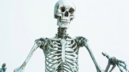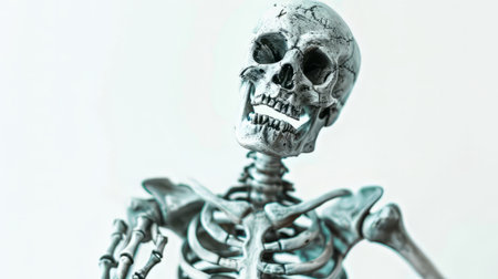 A smiling skeleton figurine with detailed bones on a clean white background, perfect for Halloween and spooky design themes.
