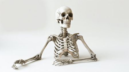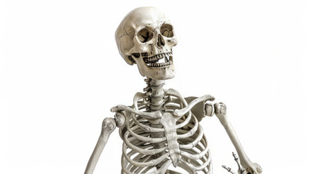 A smiling skeleton figurine with detailed bones on a clean white background, perfect for Halloween and spooky design themes.