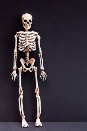 Human skeleton model in the dark close up