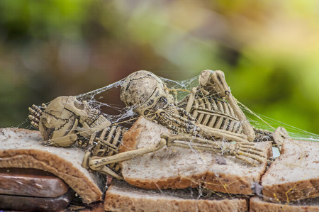 the skeleton protrudes from a plastic cup. plastic is death for nature