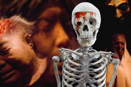 human skeleton medical drugs in the form of tablets around the skeleton. too many drugs people take in their lives
