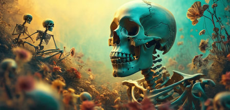 Chilling Skeletons cemetery risen. Human skull. Generate Ai