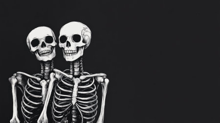 Isolated Halloween skeleton with a creepy grin, floating against a dark backdrop, perfect for spooky designs.