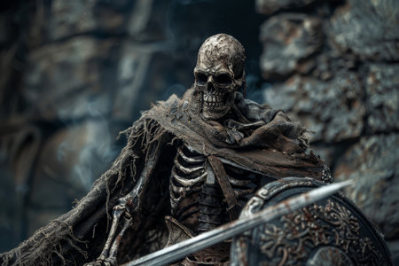 Skeleton warrior holding a sword and shield