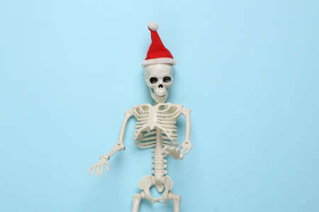 Skeleton with santa hat on a blue background