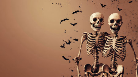Happy Skeletons in a Minimalist Halloween Banner with Text Area