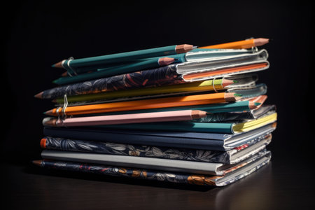 stack of notebooks and pens, ready for a new school year, created with generative ai