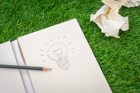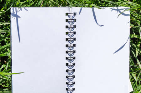 Blank Note Book on Fresh Green Grass Background with Place for Concept and Idea text