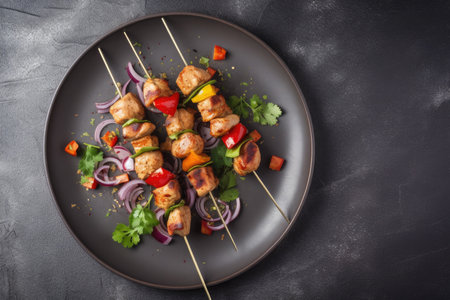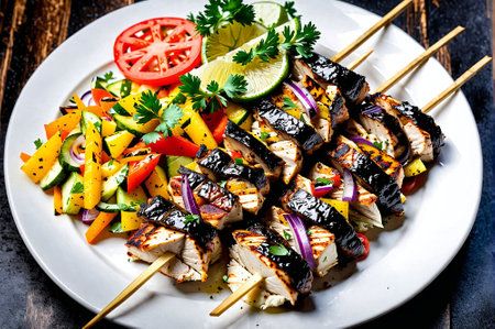 Grilled chicken skewers with vegetables, with herbs and spices.ai generated