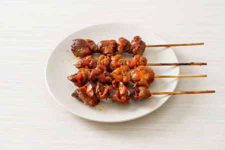 grilled chicken gizzard skewer yakitori serve in izakaya style - Asian food style