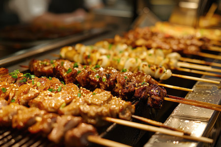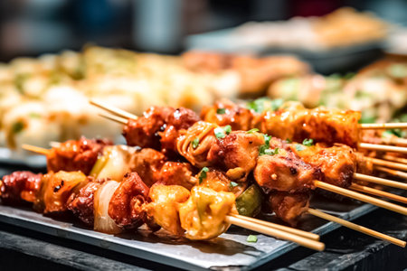 This enticing array of street food skewers showcases a delightful mix of grilled and fried treats, perfect for sharing at parties or festivals.