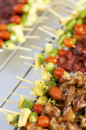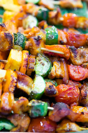 Bar B Que,Pork, beef and chicken with piece of pine apple,tomato and sweet pepper.