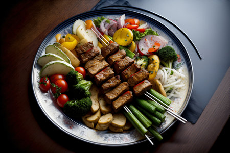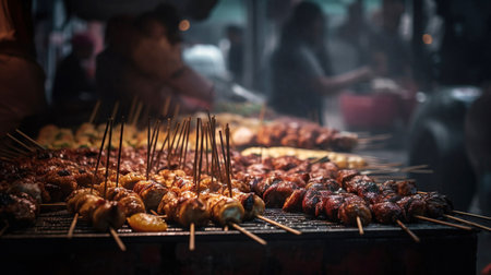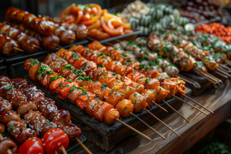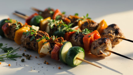 AI Generated. Middle Eastern Kebab Skewers with Vegetables and Spices