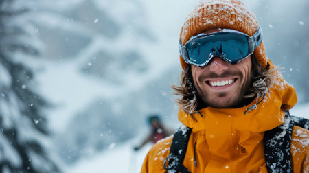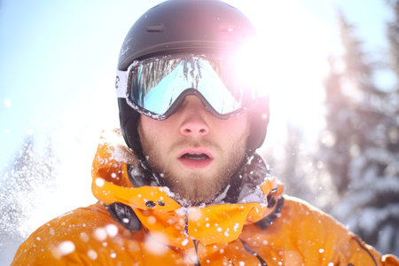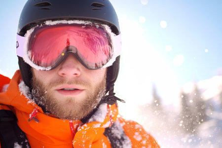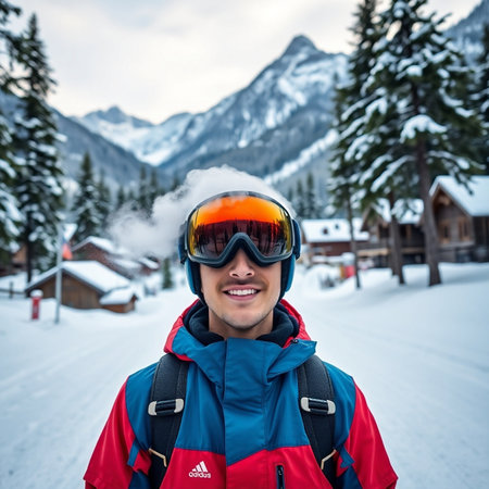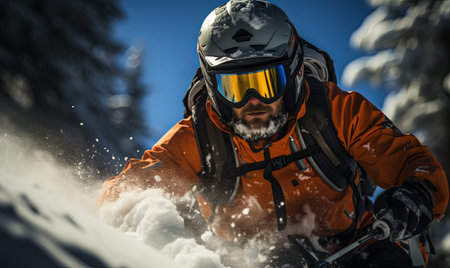 A skier man in the snow at a ski resort. Generative AI