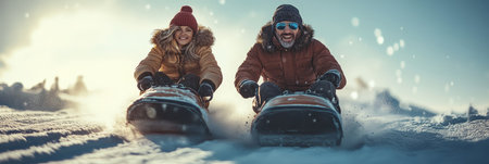 Winter Racing Joyful Couple Enjoys Extreme Speed, Sharing a Laugh as they Conquer the Slopes
