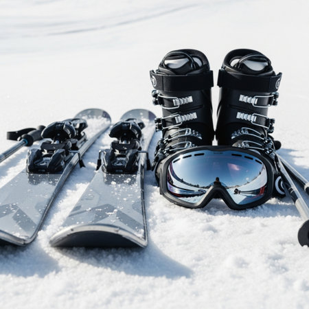 Discover high-performance ski gear designed for winter sports lovers. The image features essential skiing equipment ready for snowy adventures.